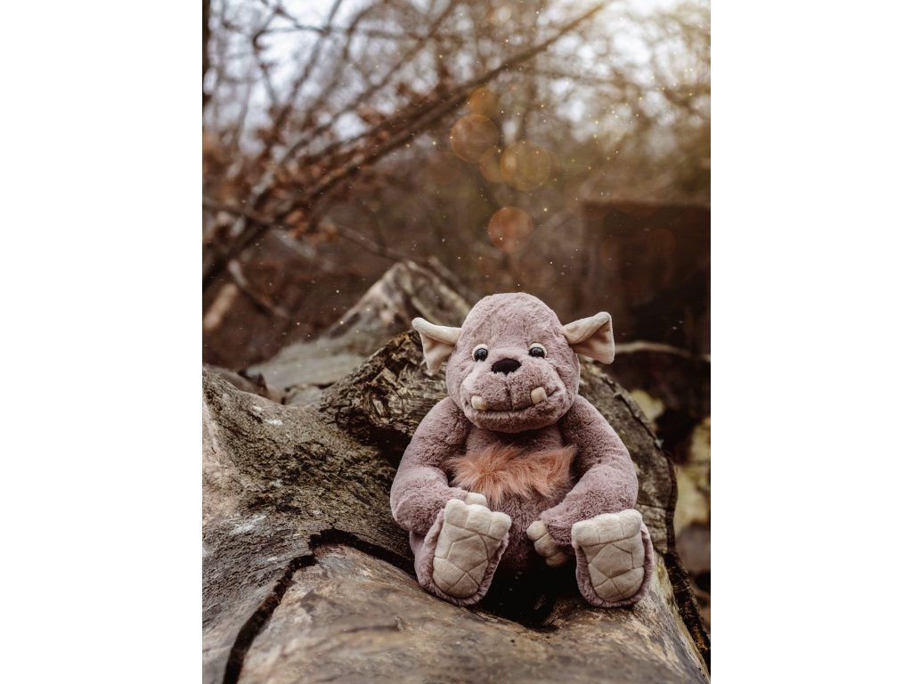 Je vyroben z extra hebkého světle hnědého plyše, má hravý zubatý úsměv s kapkou rošťáctví a výrazné, vyšívané tlapky jako stvořené pro obejmutí. Jemný oranžový chomáček srsti na bříšku mu dodává teplo a osobitý charakter. Díky nekloubovému provedení je ideální i pro menší děti, navíc jej lze prát v pračce, takže zvládne každé dobrodružství.