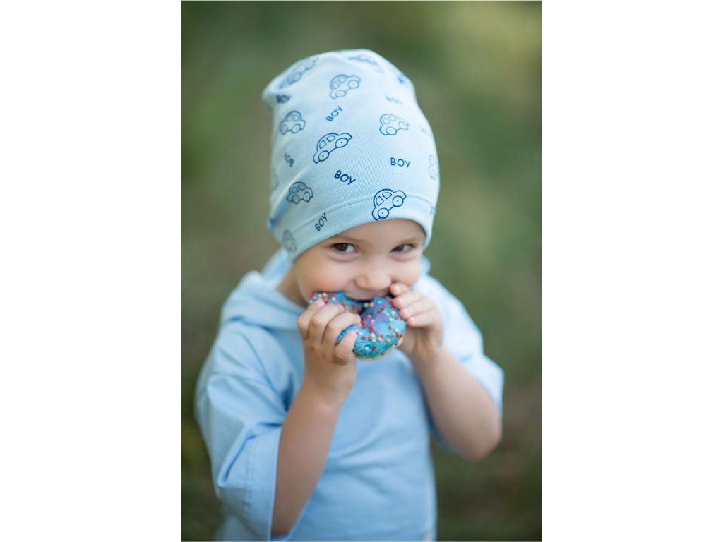 Čepička s autíčky - modrá