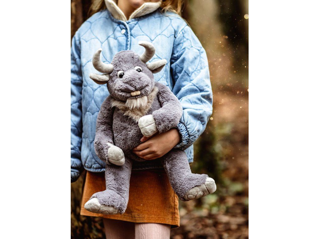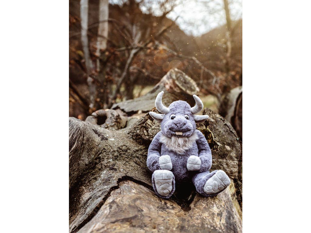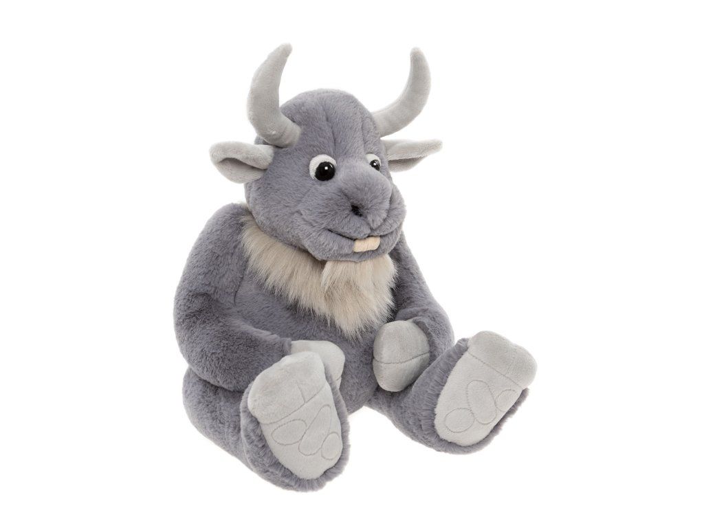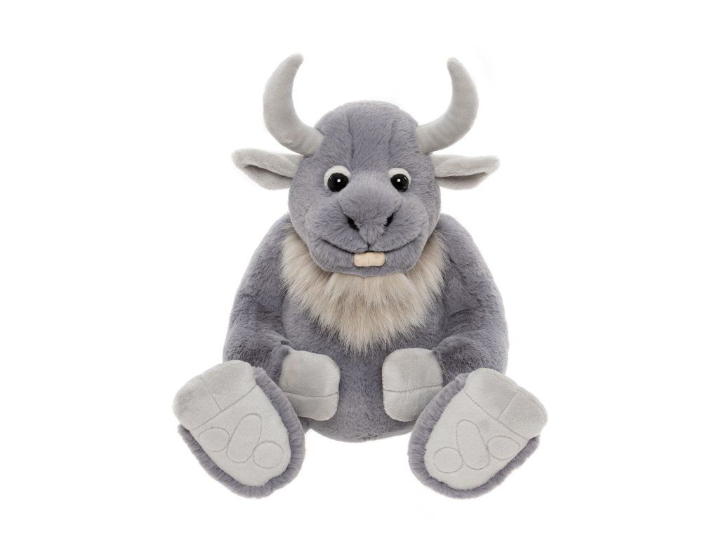 Cobblestone je vyroben z luxusně hebkého šedého plyše se světlejšími akcenty, má jemný kožíšek na bradě, zahnuté rohy a přátelský výraz, který mu dodává výraznou osobnost. Široké, vyšívané tlapky a propracované detaily podtrhují jeho stabilní a uklidňující přítomnost. Díky nekloubovému provedení a možnosti praní v pračce je ideální pro každodenní mazlení i dobrodružství.