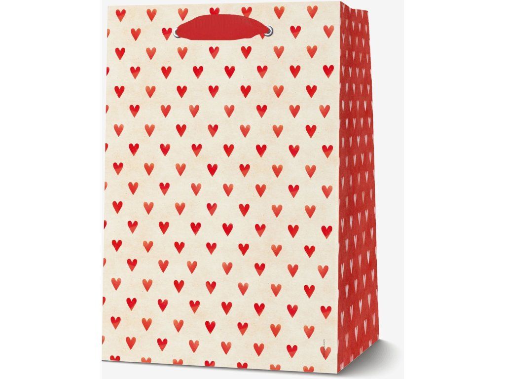Dárková taška s motivem srdcí.