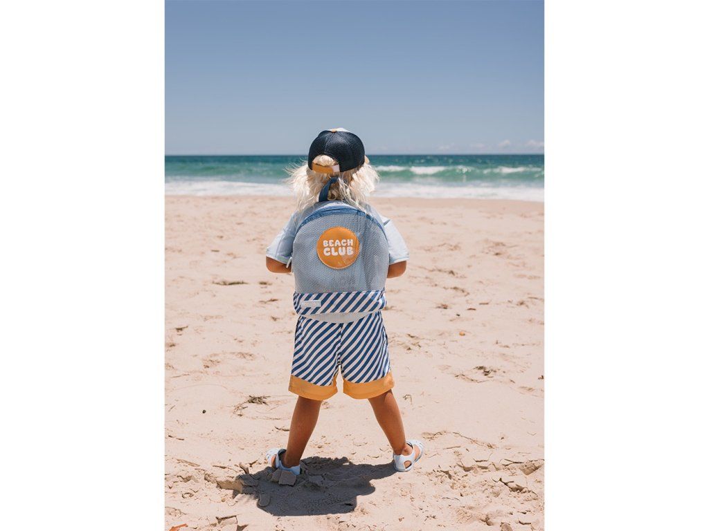 Batoh, který si děti zamilují na pláž, k bazénu i na všechna letní dobrodružství! Tento sand-free batoh z kolekce Monnëka Stripes Blues & Beyond je navržen tak, aby udržel věci čisté, suché a bez písku.