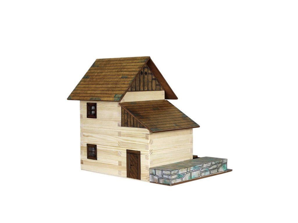 Dřevěná slepovací stavebnice HOBBY KITS umožňuje postavit detailní model tradiční stavby v měřítku 1:32. Obsahuje dřevěné hranolky přesných délek pro stavbu roubených stěn, díly na střechy a štíty, kartonové výseky oken a dveří i předtištěné papírové potisky. Součástí balení je také schematický montážní plán.