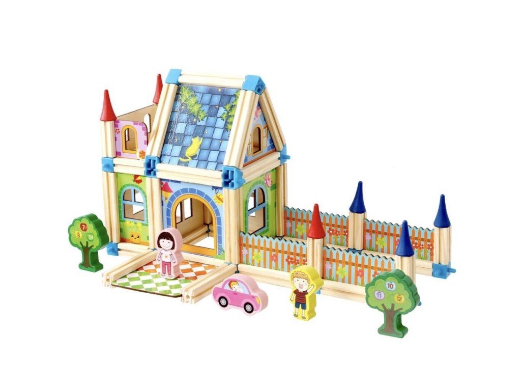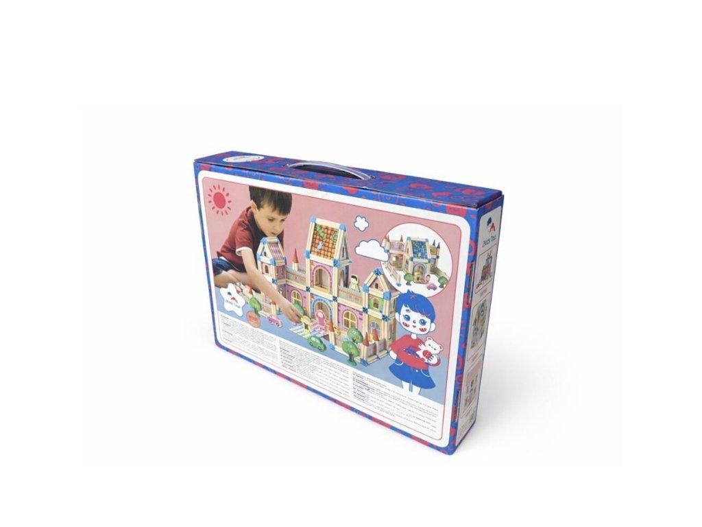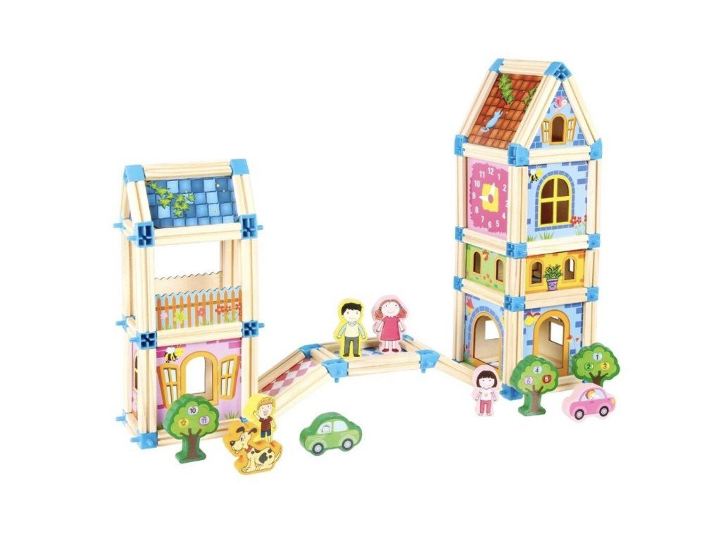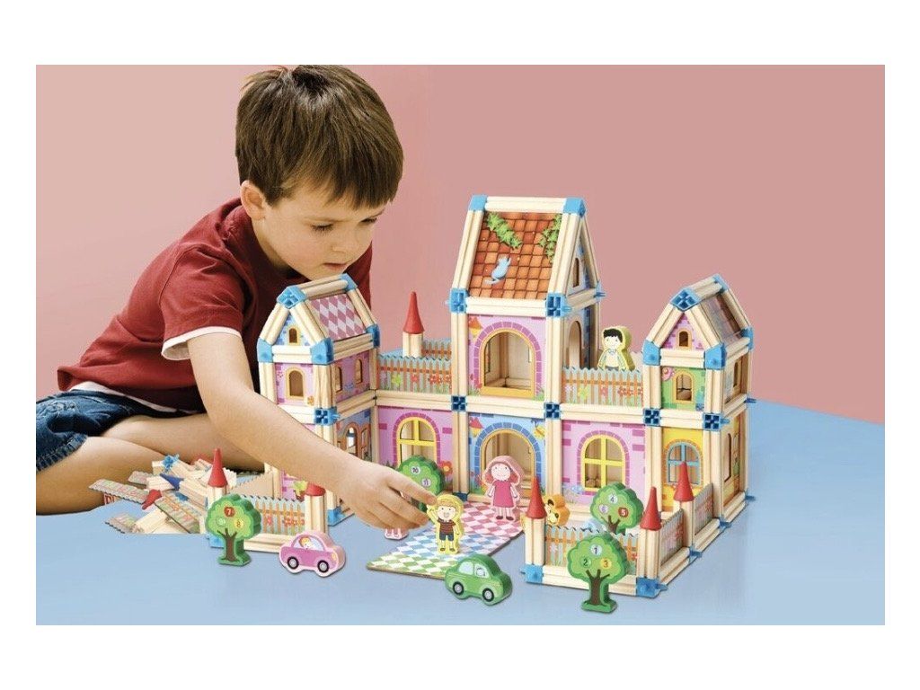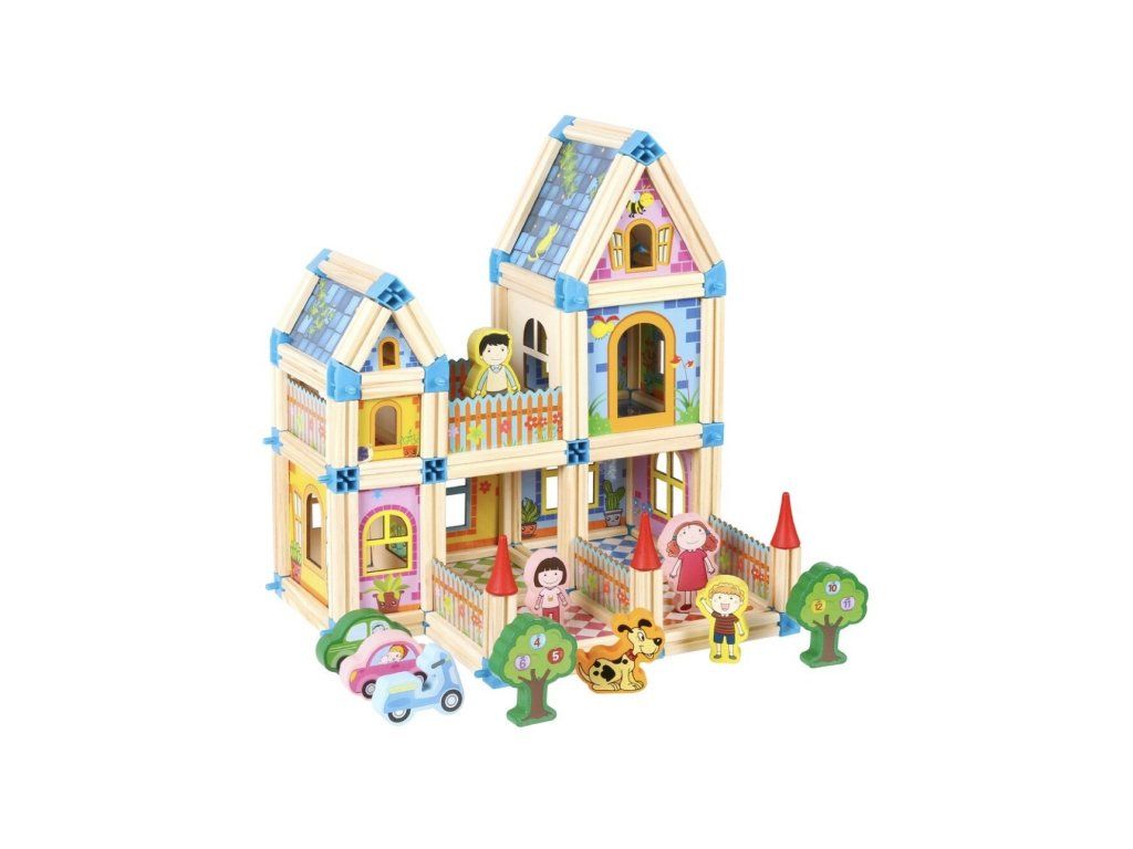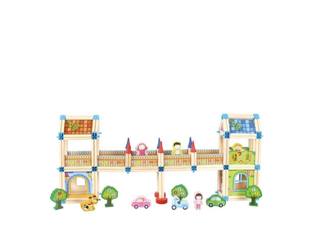 S touto barevnou stavebnicí se fantazii meze nekladou! Sada obsahuje 268 dílků ze dřeva a plastových spojů, které umožňují stavět domy, hrady, paláce i originální vlastní projekty. Kombinace různých velikostí, tvarů a barevných kontrastů motivuje děti k objevování nových možností a podporuje jejich logické myšlení.