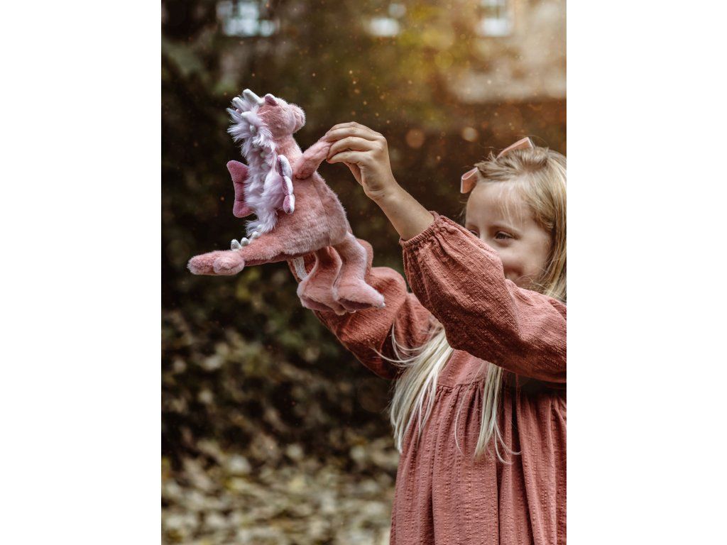 Vhodná od 18 měsíců – půvabný růžový drak stvořený pro magické chvíle a každodenní objetí.