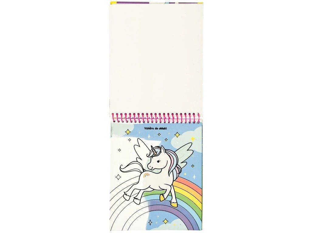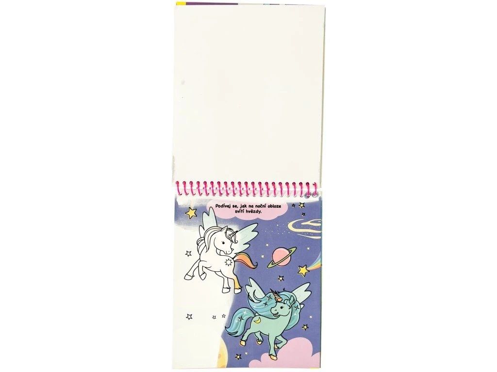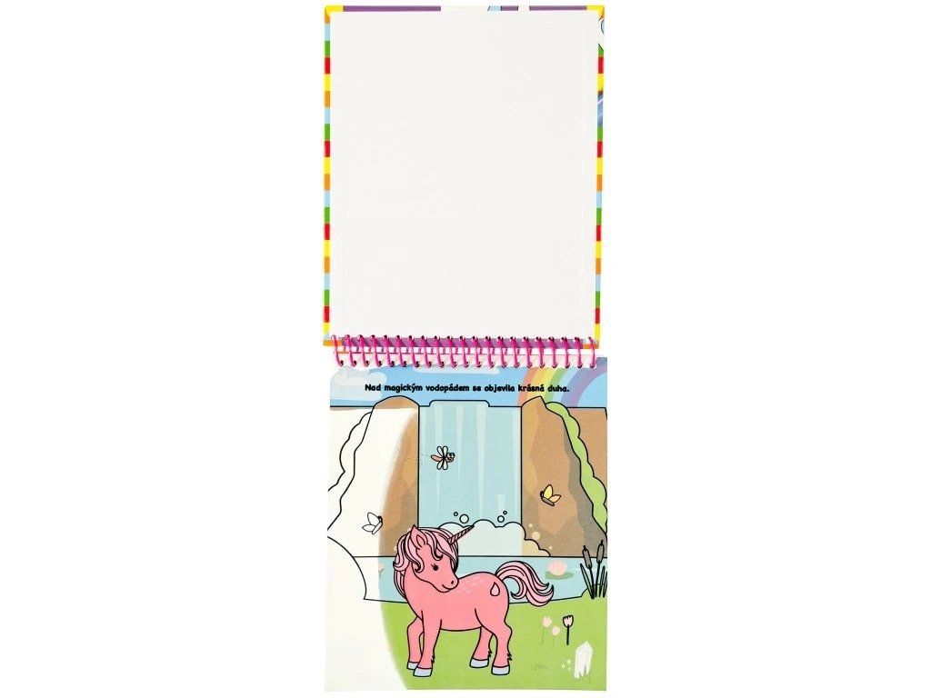 Naplň fix vodou a pusť se do vybarvování stránek této roztomile ilustrované knížky. Pomocí speciálního vodního fixu se před očima dětí jako kouzlem objeví nádherné obrázky magických jednorožců. Barvy však nezůstanou napořád. Jakmile voda začne vysychat, obrázky se postupně vytratí a děti mohou znovu začít vybarvovat. Kouzelné omalovánky tak přinášejí zábavu stále dokola.