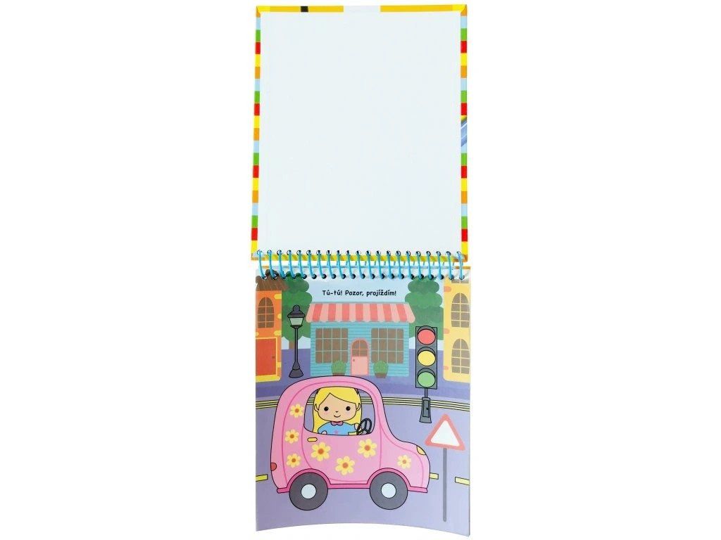 Naplň fix vodou a pusť se do vybarvování stránek této roztomile ilustrované knížky. Pomocí speciálního vodního fixu se před očima dětí jako kouzlem objeví veselé obrázky různých vozidel a dopravních prostředků. Barvy však nezůstanou navždy. Jakmile voda začne vysychat, obrázky se postupně vytratí a děti mohou začít znovu vybarvovat. Kouzelné omalovánky tak přinášejí zábavu stále dokola.