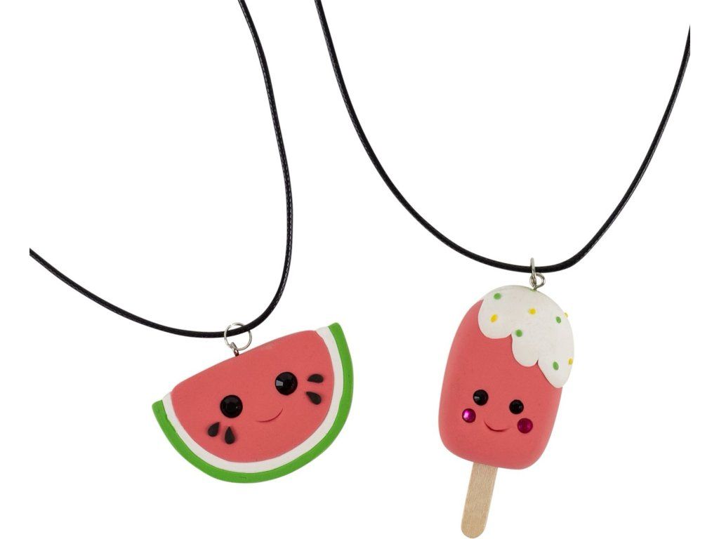 Tato chytrá kreativní sada obsahuje vše, co děti potřebují k výrobě roztomilých přívěsků ve tvaru melounu a zmrzliny. Ideální pro malé tvůrce, kteří si chtějí vytvořit vlastní originální doplňky.