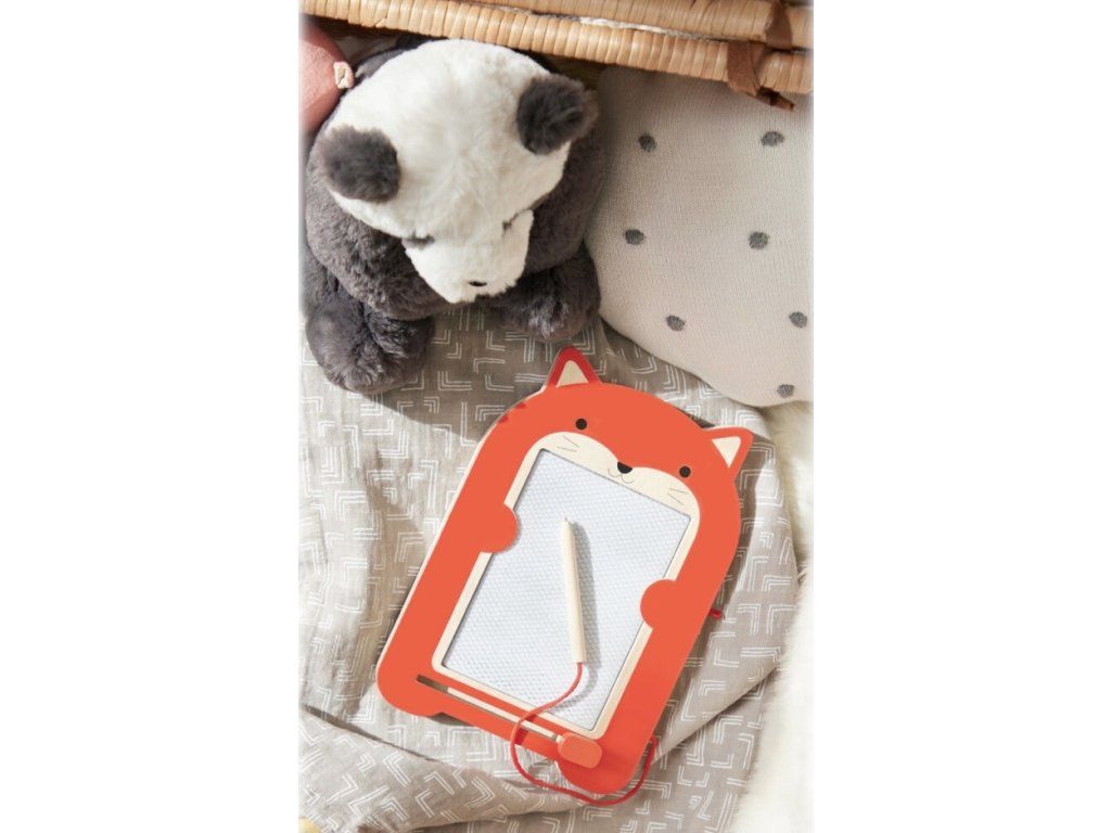 Magnetická kreslící tabulka liška od značky Petit Collage je zábavnou a kreativní hračkou, kterou si děti okamžitě oblíbí. S magnetickým perem mohou kreslit, psát a tvořit podle své fantazie. Když chtějí začít znovu, stačí jednoduše posunout magickou gumu z jedné strany na druhou – a během pár vteřin mají opět čisté plátno. (Možná tolerance několika drobných nemazatelných bodů je běžná.)