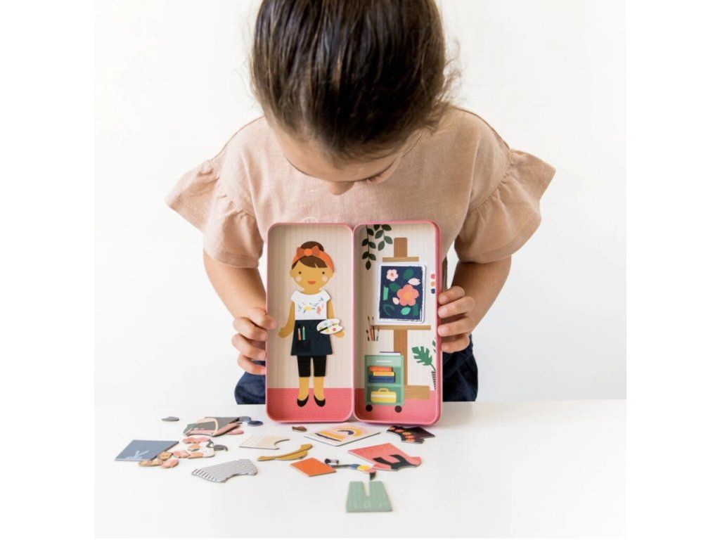 Tento prestižními cenami ověnčený přenosný magnetický set od značky Petit Collage byl navržen tak, aby inspiroval odvážné a dobrodružné děti – dívky i kluky. Každý může mít velké sny a s dostatečnou pílí je proměnit ve skutečnost. Díky dvěma ilustrovaným scénám a bohaté sadě magnetů si děti mohou vytvářet vlastní příběhy plné fantazie, objevování a odvahy.