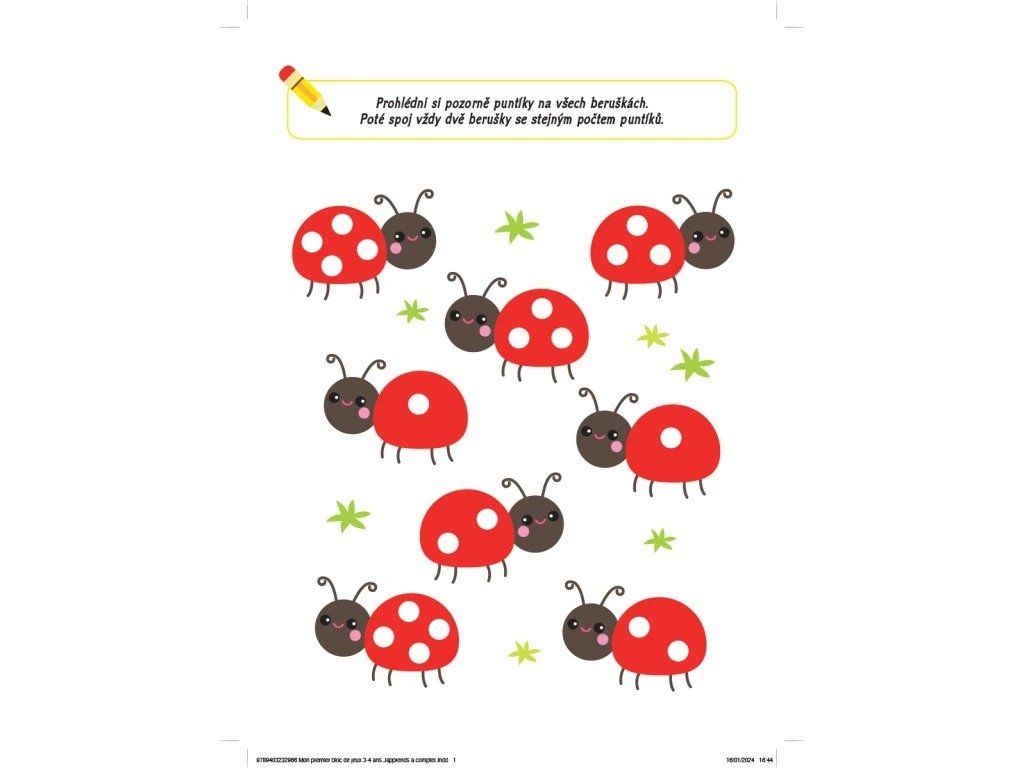 - úkoly na spojování bodů, kreslení a vybarvování