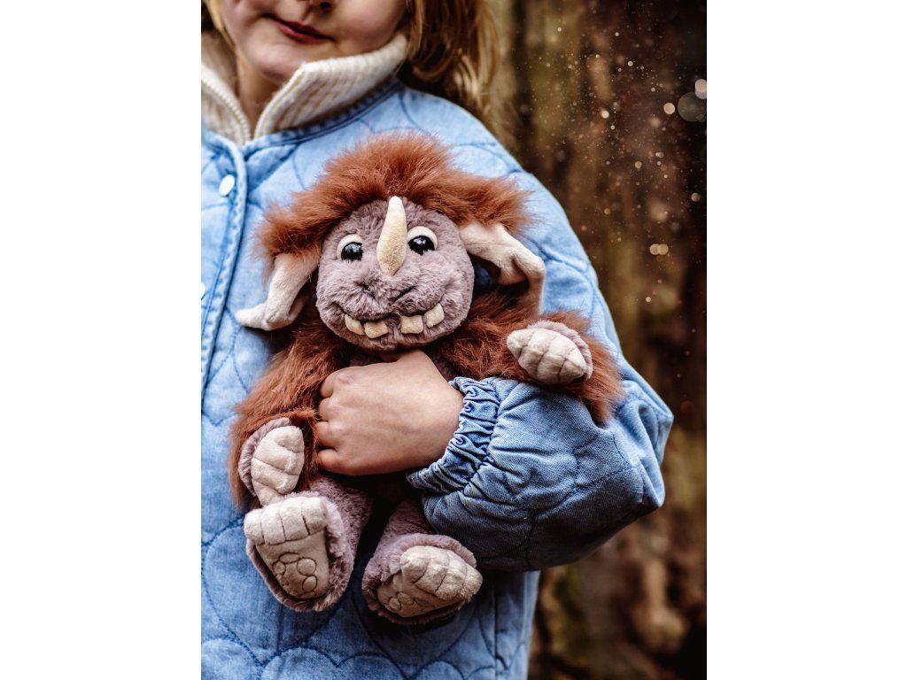 Díky velkému zubatému úsměvu, dlouhým měkkým uším a rozcuchaným chlupatým detailům působí spíš legračně než strašidelně. Je vyroben ze světle hnědého, nádherně jemného plyše, má výrazné ručně vyšívané tlapky a jemný roh, takže je ideální na mazlení, hraní i hlídání postele před nočními strašidly. Ne-kloubové provedení zajišťuje maximální měkkost a možnost praní v pračce dělá z Pebbla praktického kamaráda připraveného na dlouhá léta dobrodružství.
