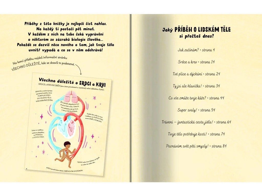 Každý příběh trvá přibližně pět minut, takže je ideální pro krátké společné čtení. V každé kapitole se děti dozvědí něco nového o tom, jak lidské tělo vypadá uvnitř a jaké zázraky biologie v něm probíhají.