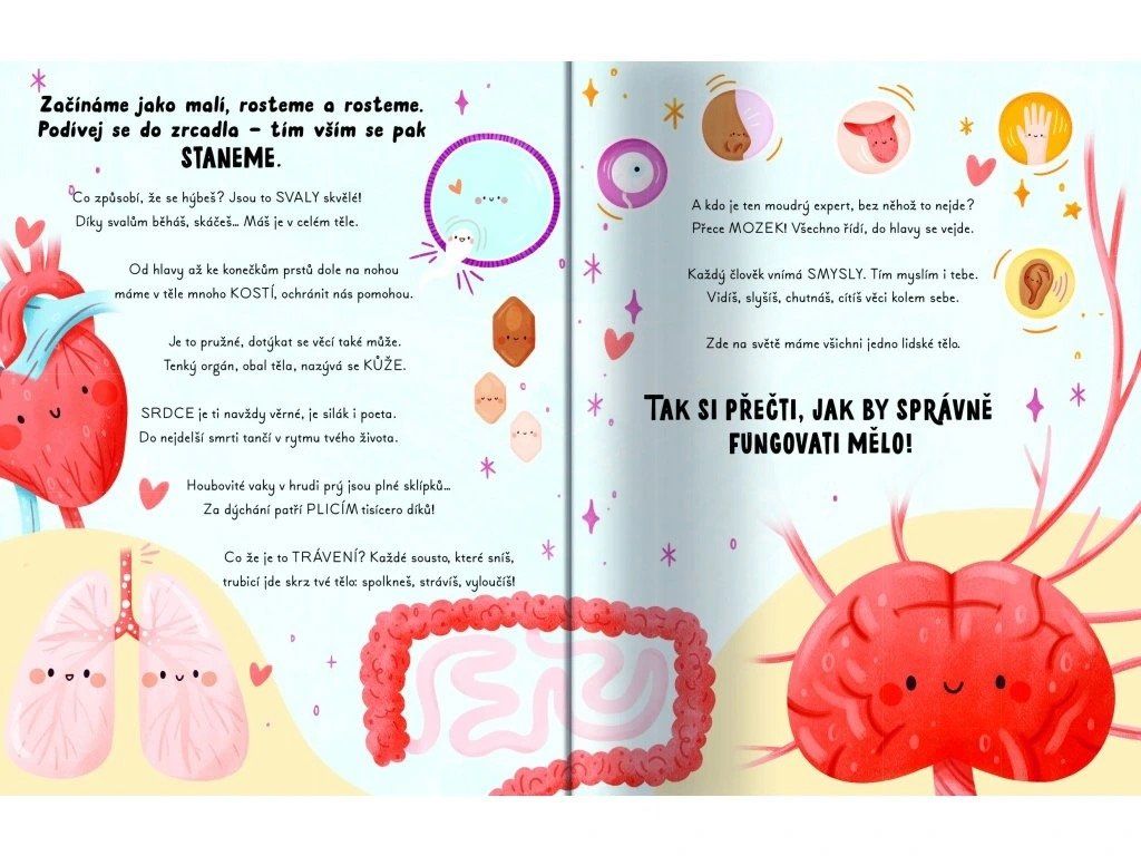 V této hravé knížce děti postupně objevují tajemství lidského těla prostřednictvím krátkých veršovaných příběhů. Díky poutavému vyprávění a krásným ilustracím mohou malí čtenáři snadno pochopit, jak naše tělo funguje a co všechno se v něm odehrává.