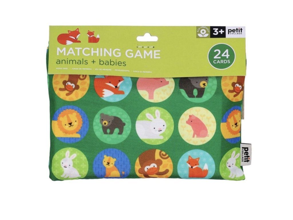 Pexeso – Zvířátka a jejich mláďata od značky Petit Collage je krásná barevná hra pro předškolní děti. Úkolem je správně spárovat zvířecí rodiče s jejich mláďaty a při tom si hravou formou procvičit paměť i rozpoznávání barev.