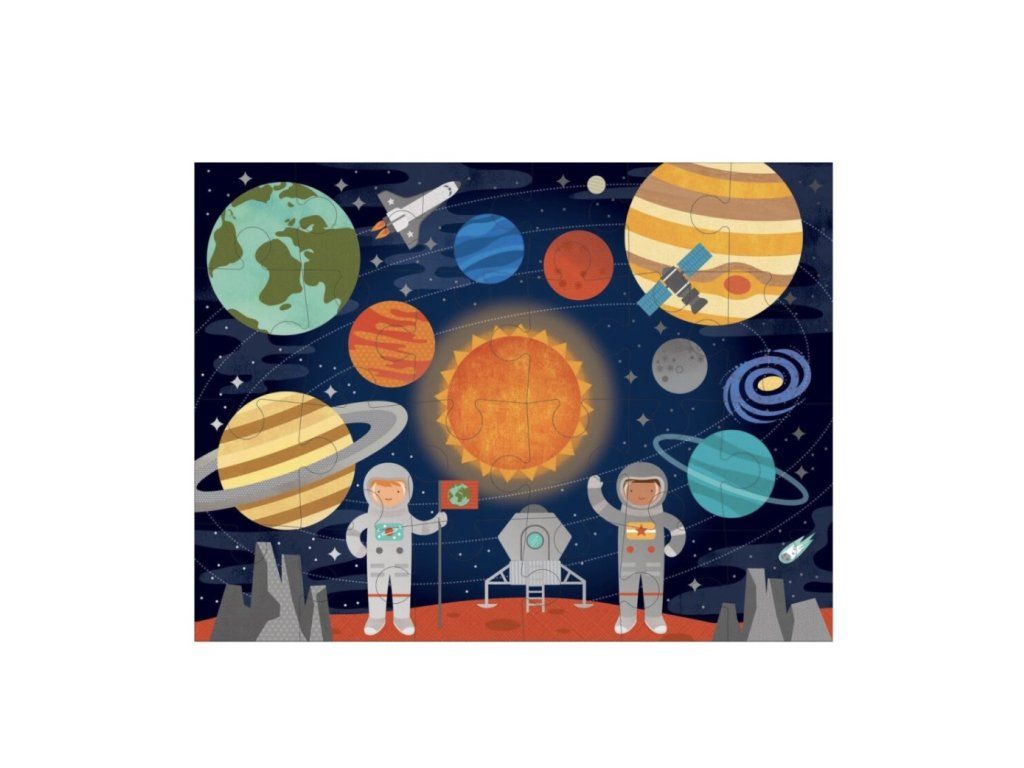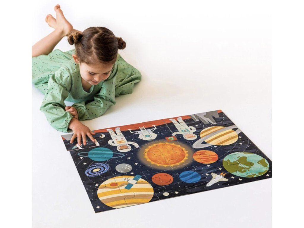 Podlahové puzzle Vesmír od značky Petit Collage je skvělou volbou pro malé objevitele hvězd a planet. Extra velké dílky jsou ideální pro batolata a snadno se drží v malých dětských ručičkách. Krásná vesmírná ilustrace plná zářivých barev děti vtáhne do světa raket, hvězd a dobrodružství.