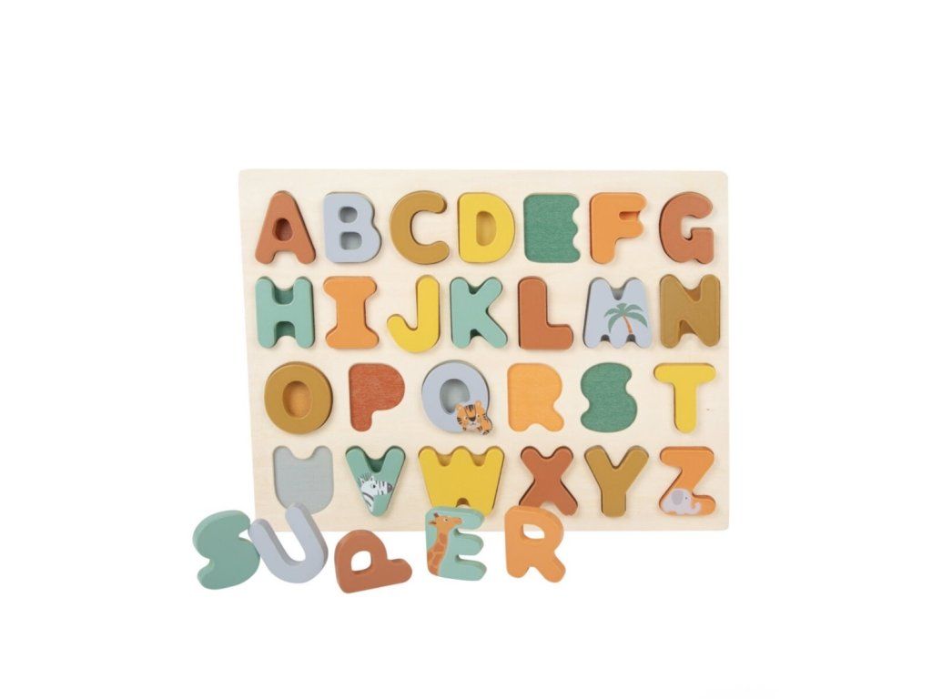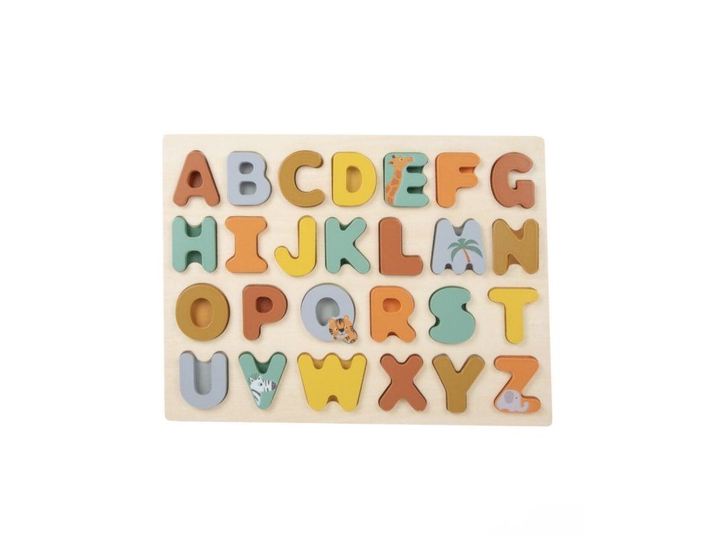 Naučte se abecedu hravým způsobem! S tímto dřevěným puzzlem v trendy pastelových barvách se děti naučí písmena abecedy a zároveň si procvičí jemnou motoriku. Puzzle obsahuje 26 vystouplých dřevěných písmen, která mohou děti snadno uchopit a vložit do správných otvorů i malýma rukama.